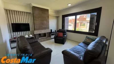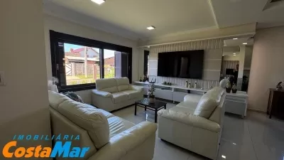 Belíssima residência com 4 dormitórios (sendo 1 suíte com closet e banheira), 3 banheiros, living com 2 ambientes, estar e jantar, cozinha com móveis planejados, área de serviço, churrasqueira, lareira, 2 sacadas, piscina, completamente mobiliada, garagem para 2 carros, piso porcelanato. Em local de moradores. Agente agora mesmo a sua visita
