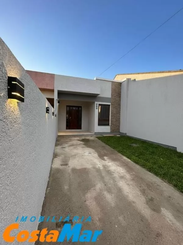 Casa Geminada a 100m da Av Principal de Nova Tramandaí. Esta encantadora casa, fica em região de moradores fixos, lugar calmo e seguro. Composta de 2 dormitórios, sala ampla de estar e jantar integrados, cozinha, banheiro social, pátio frente e fundos, ótima posição solar frente Leste. Apta para financiamento bancário, estuda veículo como parte de pagamento.