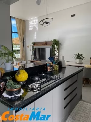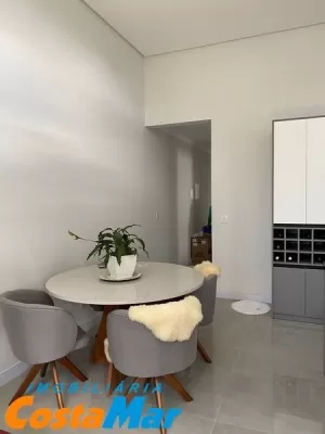 Ótima casa com 105 m² , composta de 03 dormitórios , sendo 1 suíte, banheiro social , lavanderia , cozinha com móveis planejados com espaço gourmet + com churrasqueira , piso em porcelanato espera para split ,detalhes em gesso , pé direito alto , imóvel , mobiliado , jardinagens , imóvel situado em local de moradores o ano inteiro , imóvel com alto padrão construtivo , vaga para dois carros . Imperdível valor do imóvel R$ 756.000,00. Aceita imóvel de menor valor .