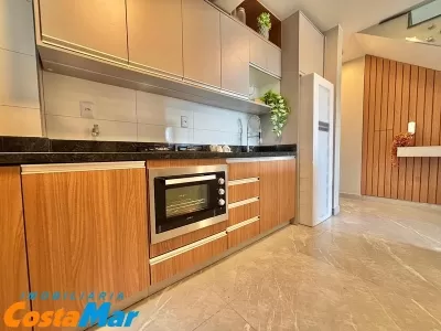 Cobertura a poucos metros do mar, prédio novo, composta de 3 dormitórios, sendo 2 suítes, living, cozinha, banheiro social, área de serviço, churrasqueira, box duplo para o carro; piso porcelanato, mobiliada e decorada. Prédio com medidores individuais de água e gás. Ótima orientação solar frente Leste. Estuda propostas!